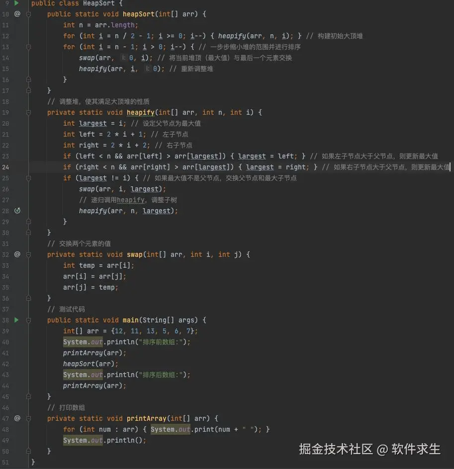 好啦,理论讲完了,接下来进入我们的实战环节。我们使用Java来手写一个堆排序算法吧!