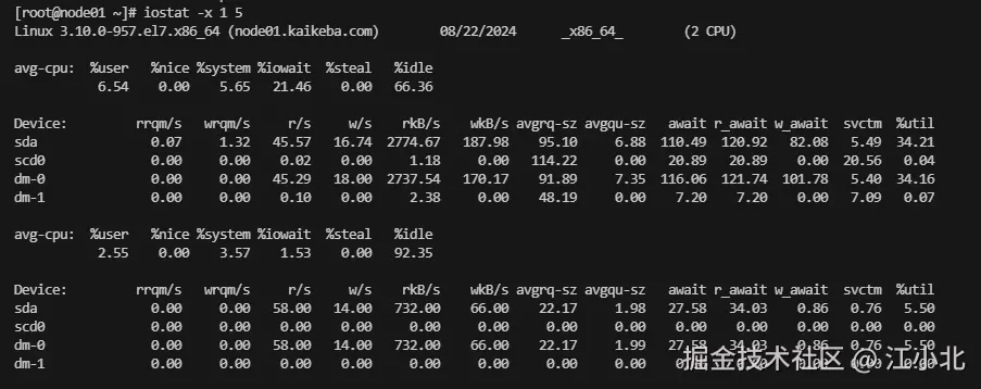 需要注意的是,使用iostat命令,需要使用yum install sysstat安装iostat工具