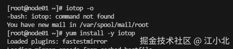 需要注意的是,如果你输入iostat -o提示“-bash: iotop: command not found”,你需要输入yum install -y iotop安装iotop工具