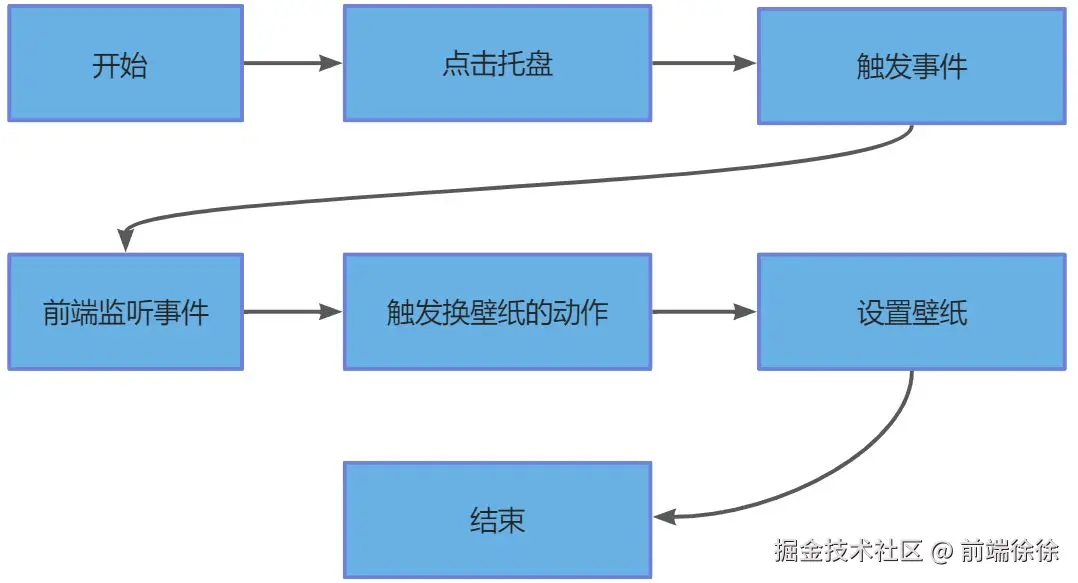 当然上面的是从 GUI 前端界面操作的,我们还有在系统托盘的功能,就是上一张下一张的快捷切换壁纸的功能,流程跟这个有所差别,但是核心逻辑都差不多,具体逻辑如下图所示。