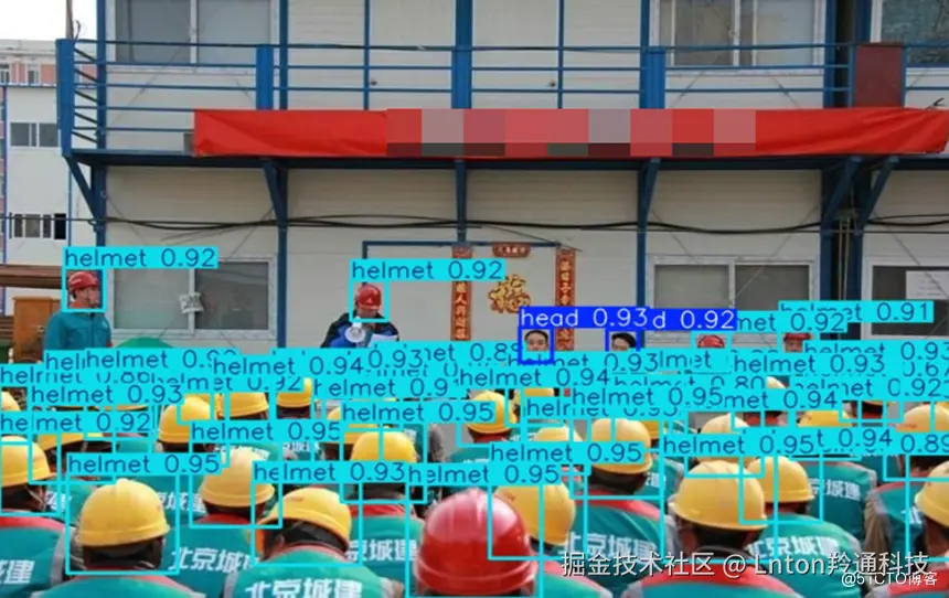 安全帽识别:在识别到头部区域后,系统通过一个专门训练的分类模型判断该区域内是否存在安全帽。此模型通过学习大量佩戴与未佩戴安全帽的图像数据,能够准确地区分出不同类型的安全帽和未佩戴情况。系统还会进一步分析安全帽的颜色、形状等特征,以确保识别结果的准确性。