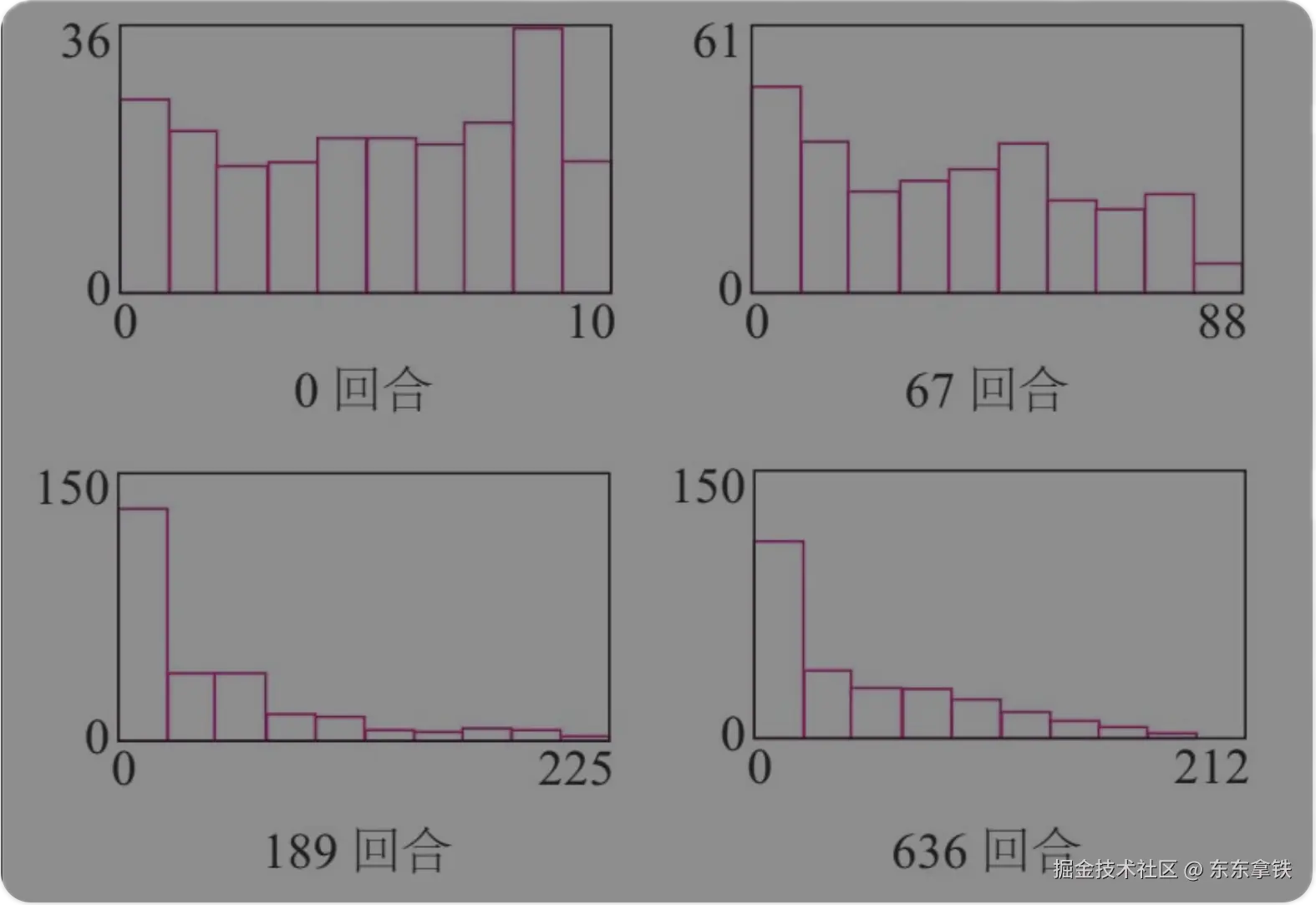 一开始的时候,大家都差不多,最富裕的24个人有10块糖;但跑着跑着,不均衡开始出现。在第189回合以后,贫富差距出现了,最富裕的2人有225块糖,而有131个人只有1块。