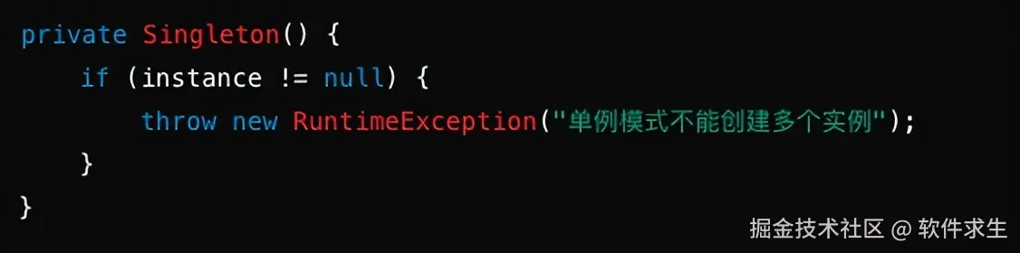 在构造方法中添加防御性代码,防止通过反射创建多个实例。