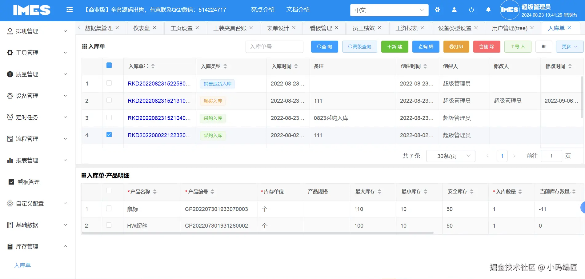 .NET 开发的开源、免费的生产执行管理系统(MES)。该系统主要为国内中小离散制造企业提供一个专业、通用且成本效益高的 MES 解决方案。