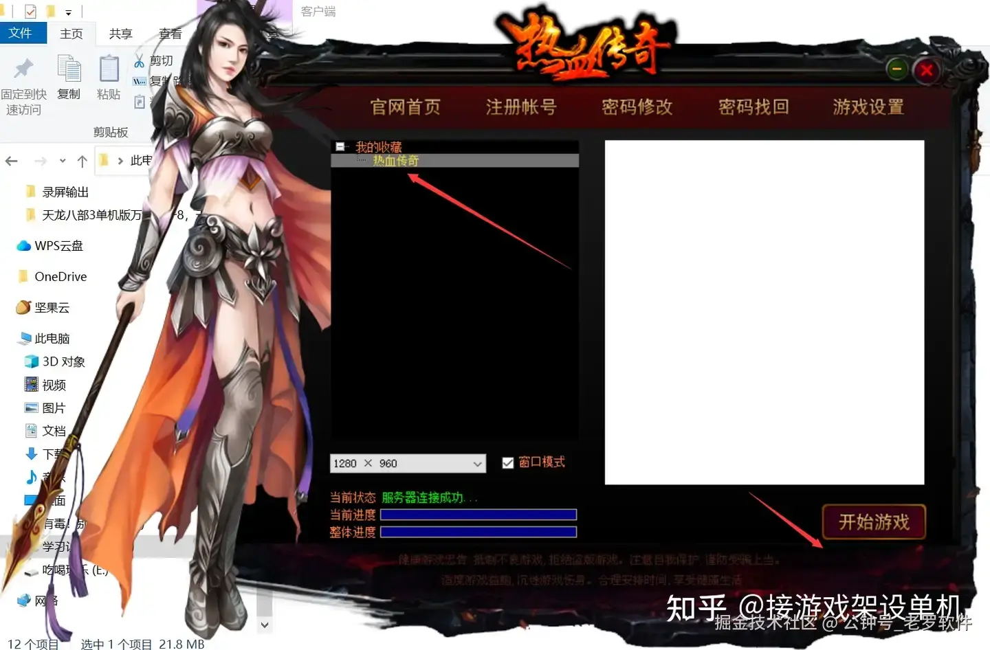 注意左边选中到热血传奇,否则开始游戏按钮不可点击