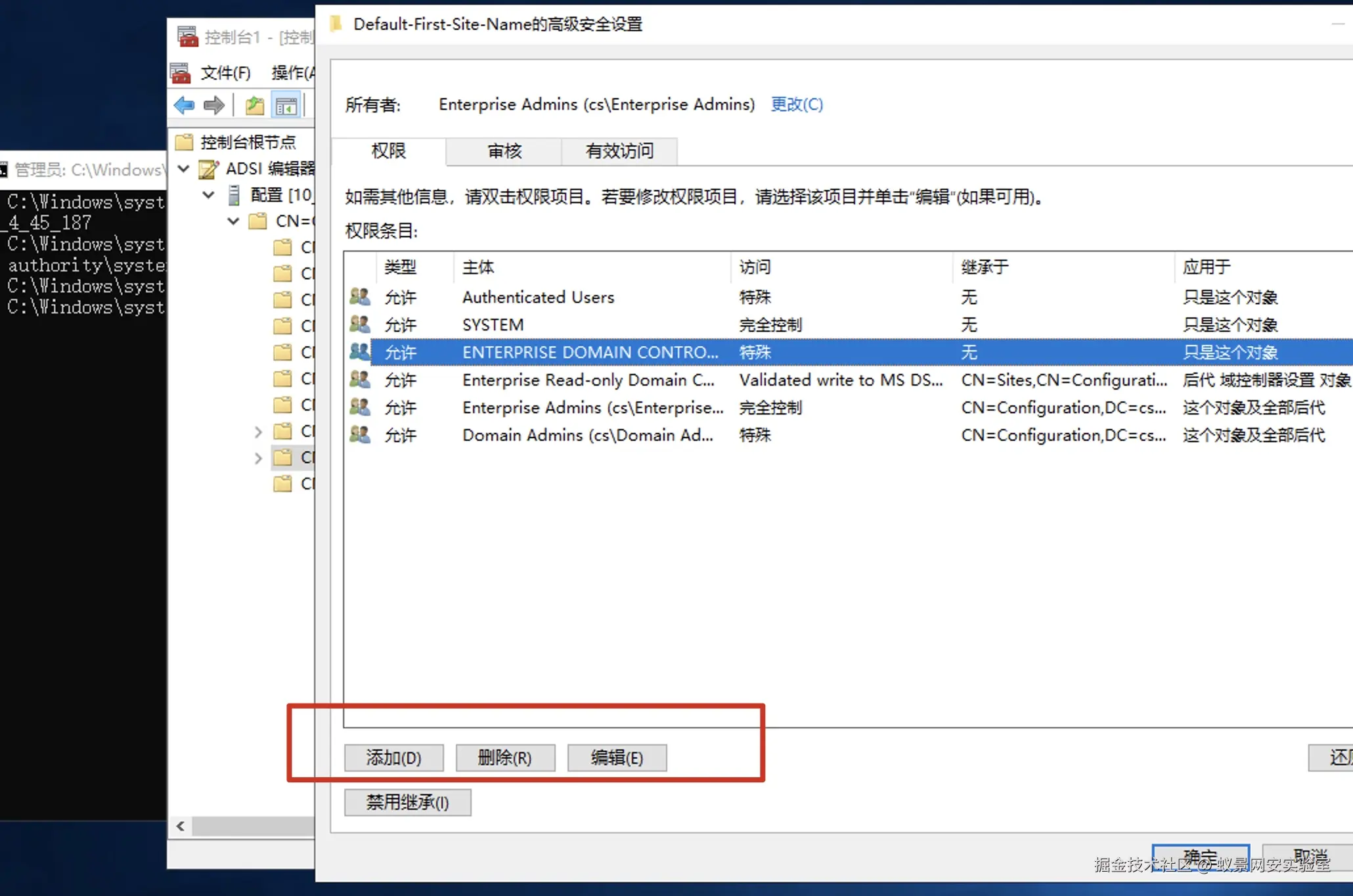 可以看到当子域拥有了SYSTEM权限后就可以修改来自父域副本的配置对象:
