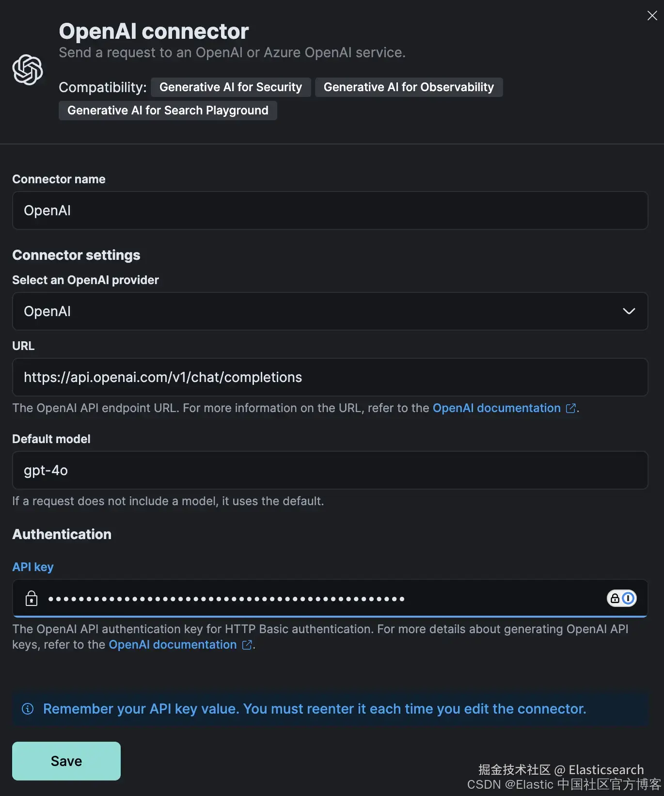 - url - 这是 Elastic Cloud 的标准 Serverless 端点