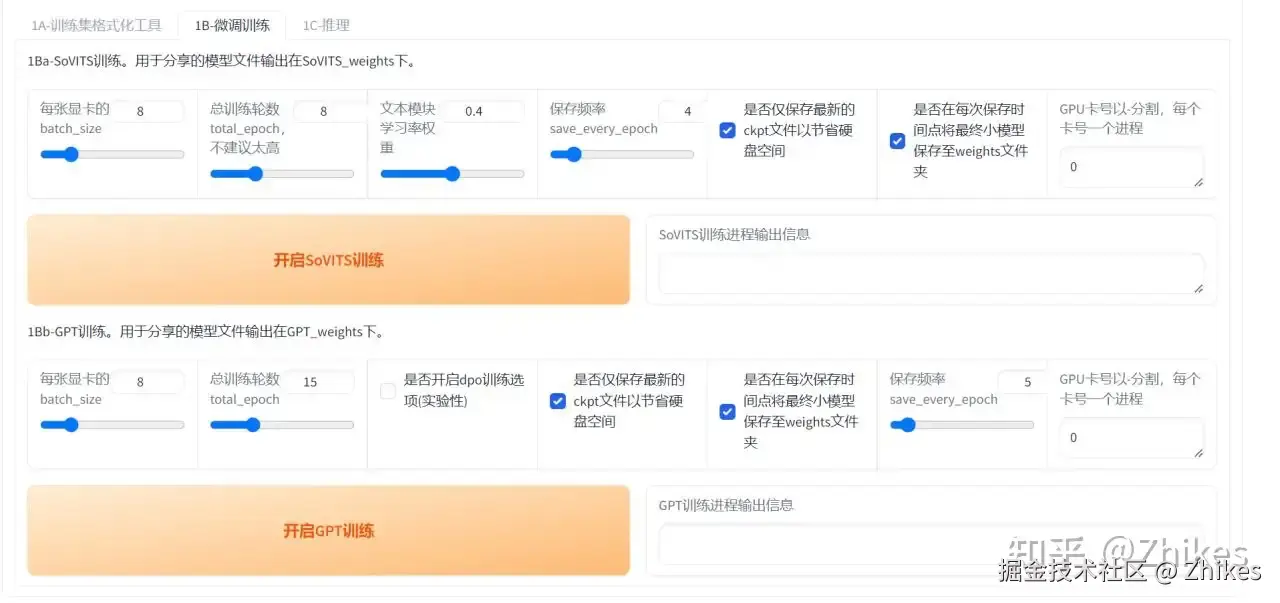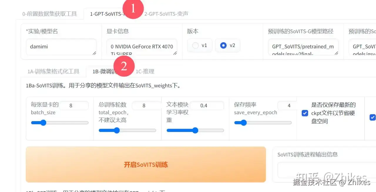 依然是在分栏 1.GPT-SoVITS-TTS进行处理,他下面还有个微调训练,也就是叫做训练模型。