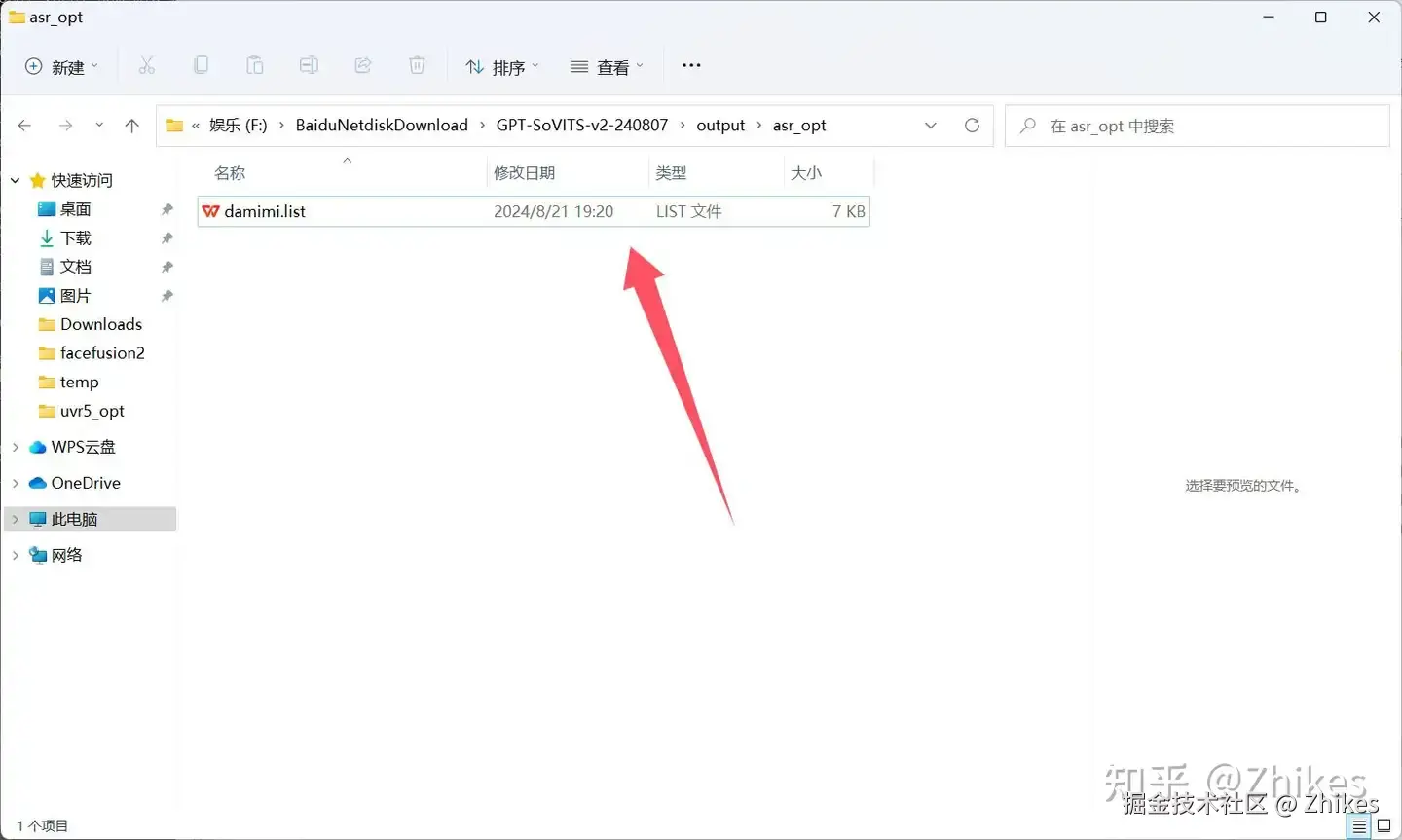 显示任务完成,就可以在输出目录 output/asr_opt/ 看到 damimi.list文件
