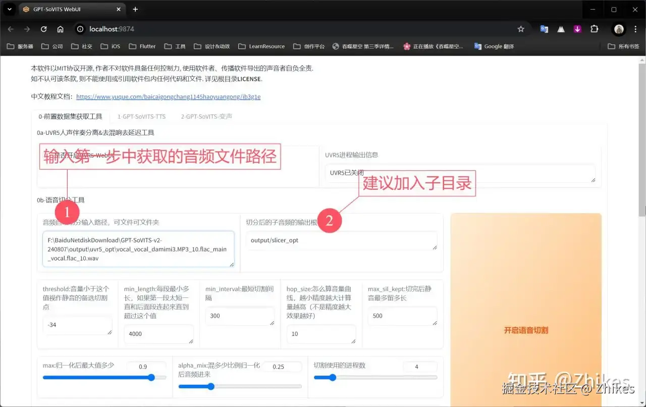 2.输入之前的音频文件目录,修改切分后的根目录,建议加入子目录。