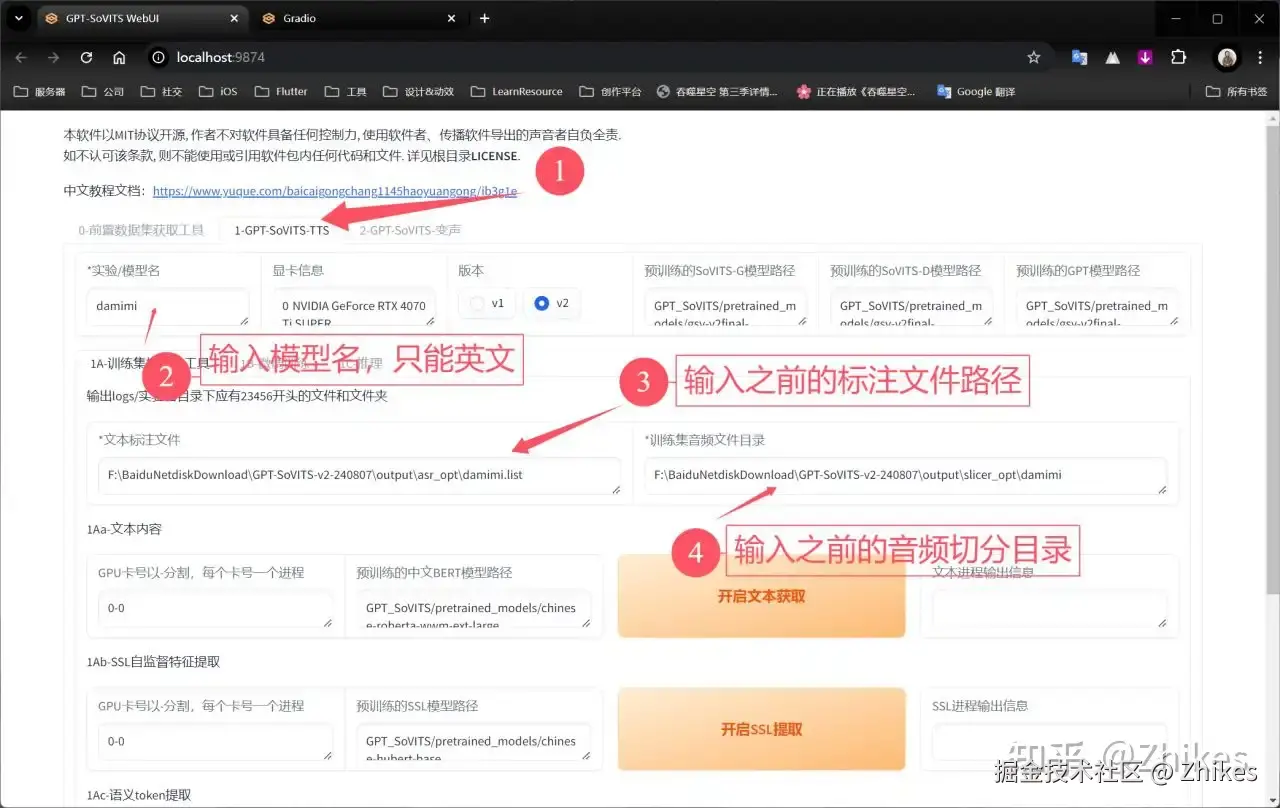 切换到分栏 1.GPT-SoVITS-TTS进行训练模型