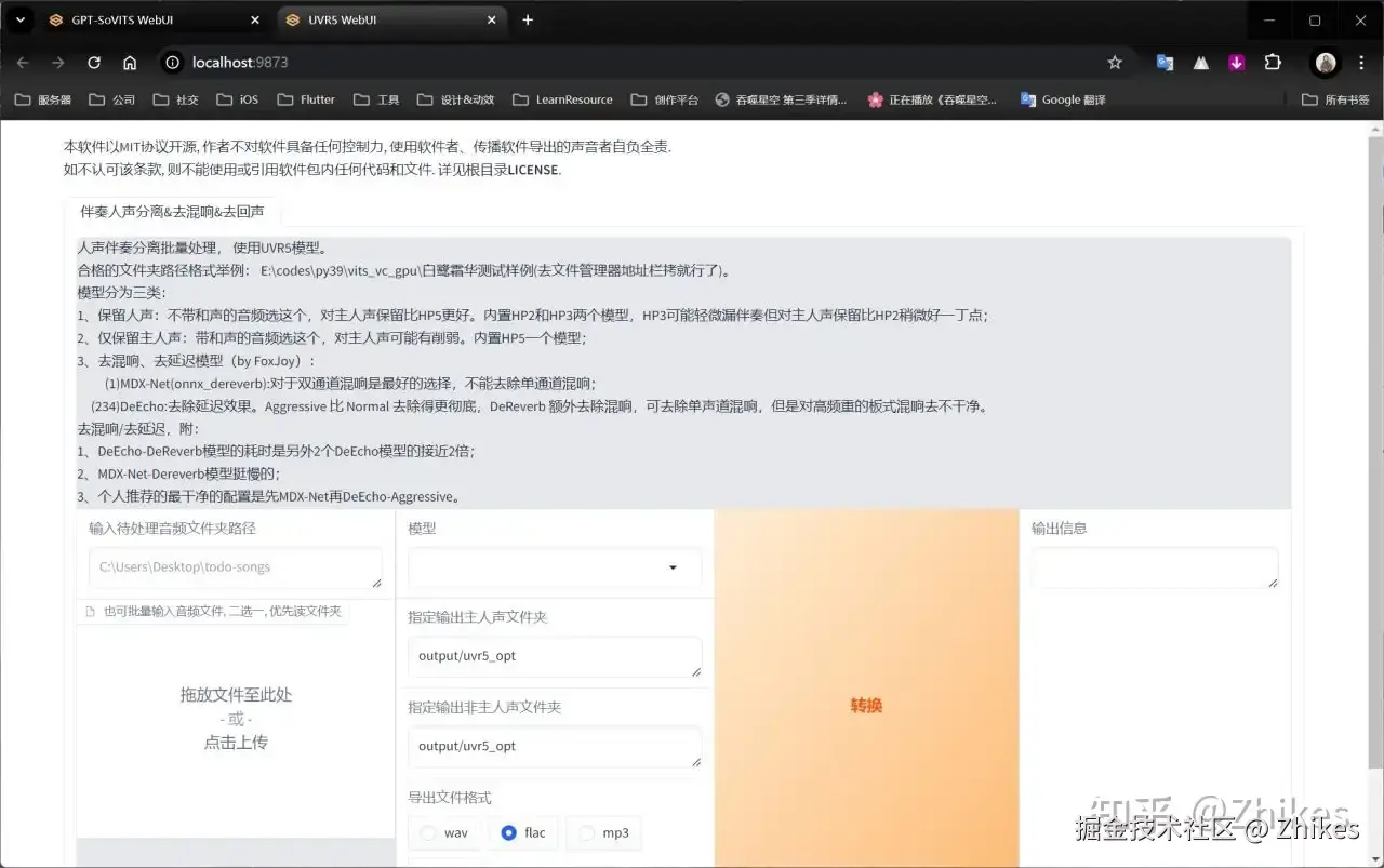 2.点击是否开启UVR5-WebUI,稍等查看cmd输出,没有报错,便会自动打开UVR5-WebUI网页