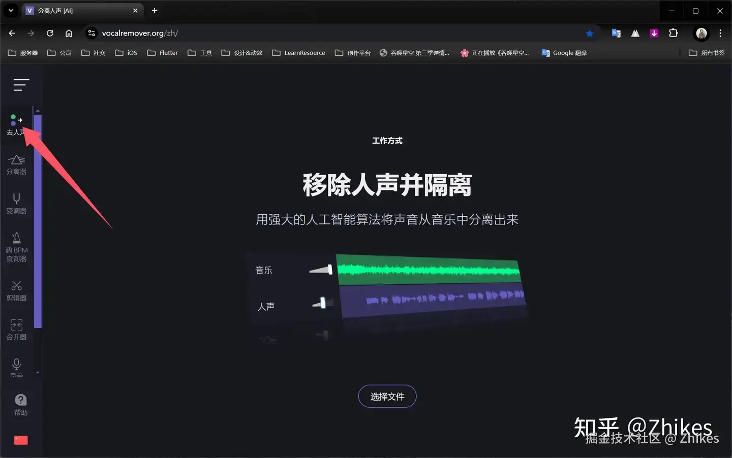 等待处理结束后,将音乐拉低,人声拉到最高,保存下载人声,即可进行第二步,无需再使用UVR5处理。这样直接获取比较纯净的人声