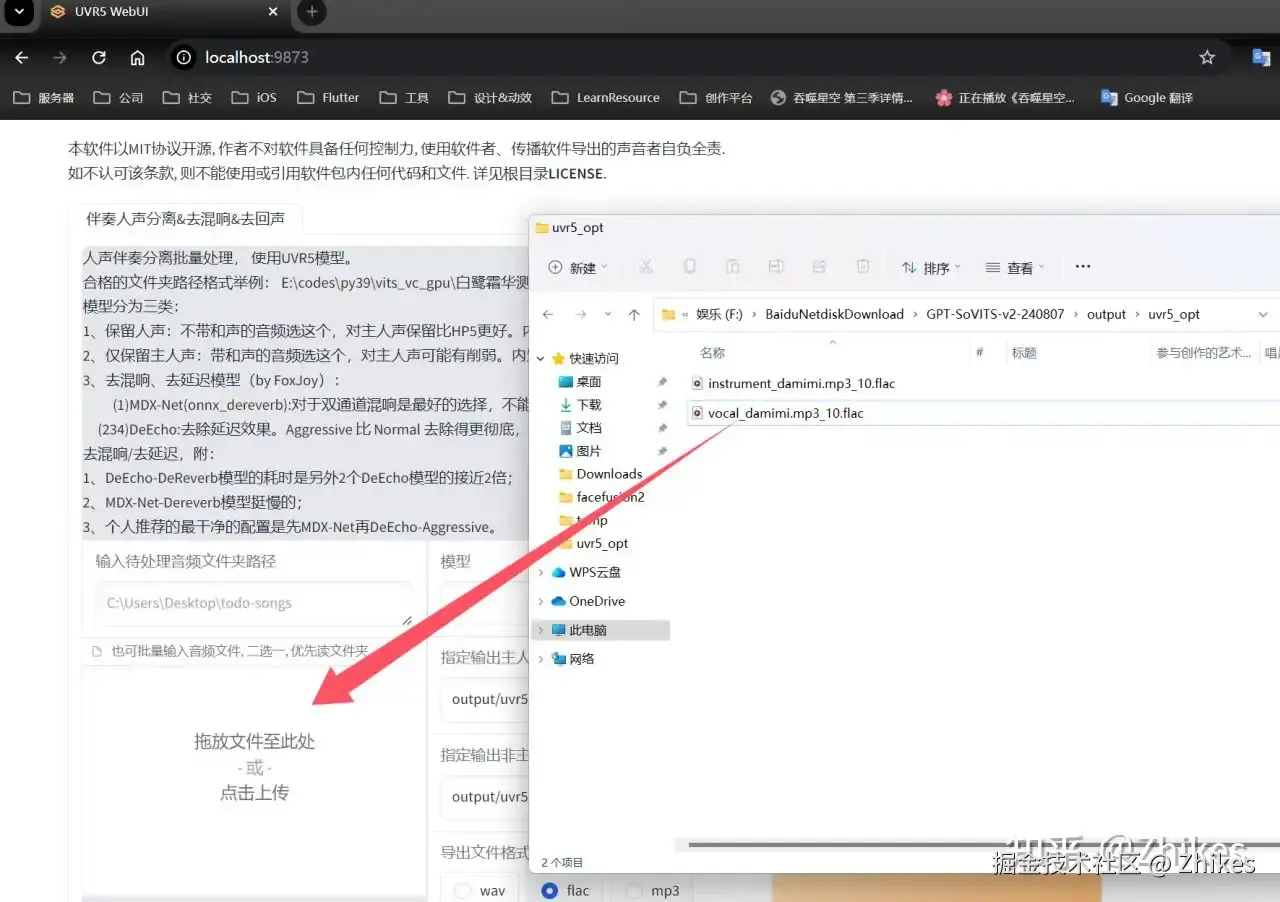 处理过程中,可能会卡住,比如我使用时在33%进度卡主,需要关掉cmd命令窗口,重新按之前步骤打开UVR5,继续把上面图片标注的文件拖进来重新处理