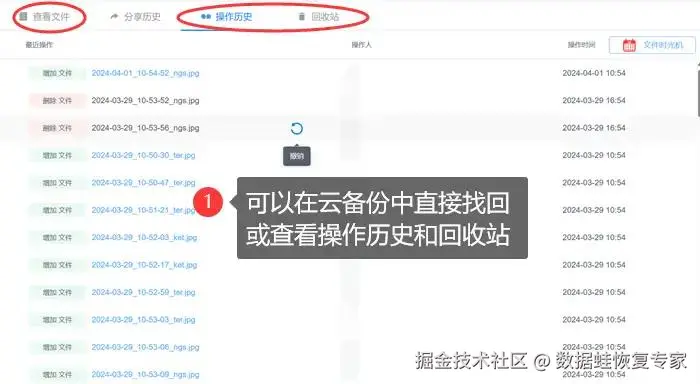 重装系统后,那些珍贵的数据如同被尘封的记忆,消失在洪流之中。不过,如果你事先将它们备份至云端,那一切皆可挽回!重装系统c盘数据恢复第一步就是寻找备份,你可以查看其他分区或外部存储设备,又或是常用的云端存储服务。例如下图,可以进入备份中,直接将数据还原,也可以查看操作历史和回收站,将它们恢复。
