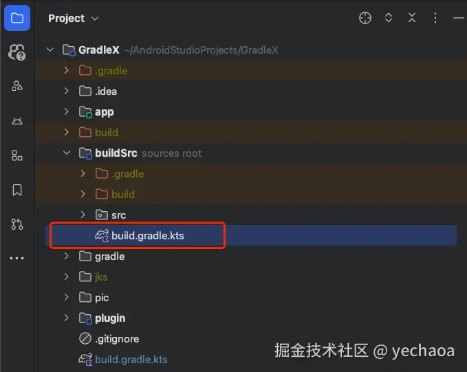在buildSrc目录下新建构建脚本build.gradle.kts文件: