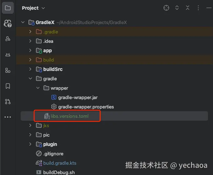 在根项目的 gradle 文件夹中,创建一个名为 libs.versions.toml的文件。Gradle 默认会在 libs.versions.toml 文件中查找目录,因此建议使用此默认名称,这个叫约定大于协议。