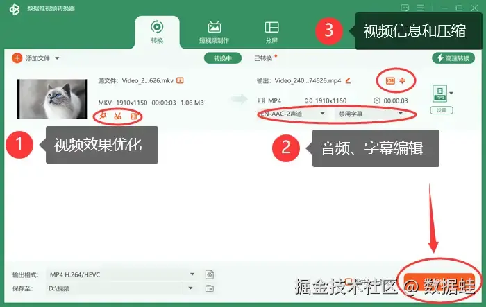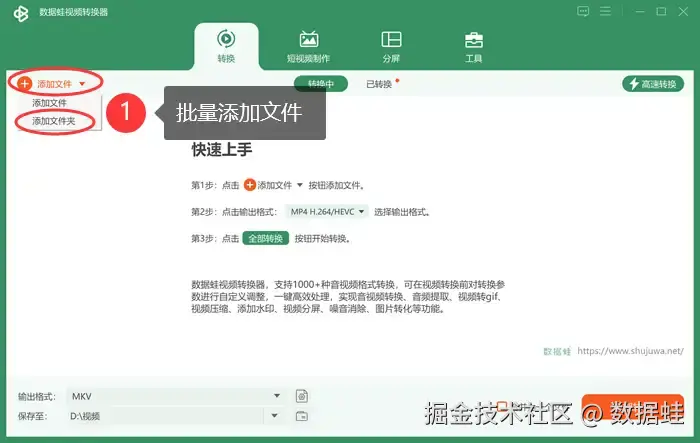 电脑mkv转换成mp4用哪个软件?小编在这里推荐数 据 蛙视频转换器。它是一款功能强大、操作简便的视频格式转换工具,它具有以下优点:
