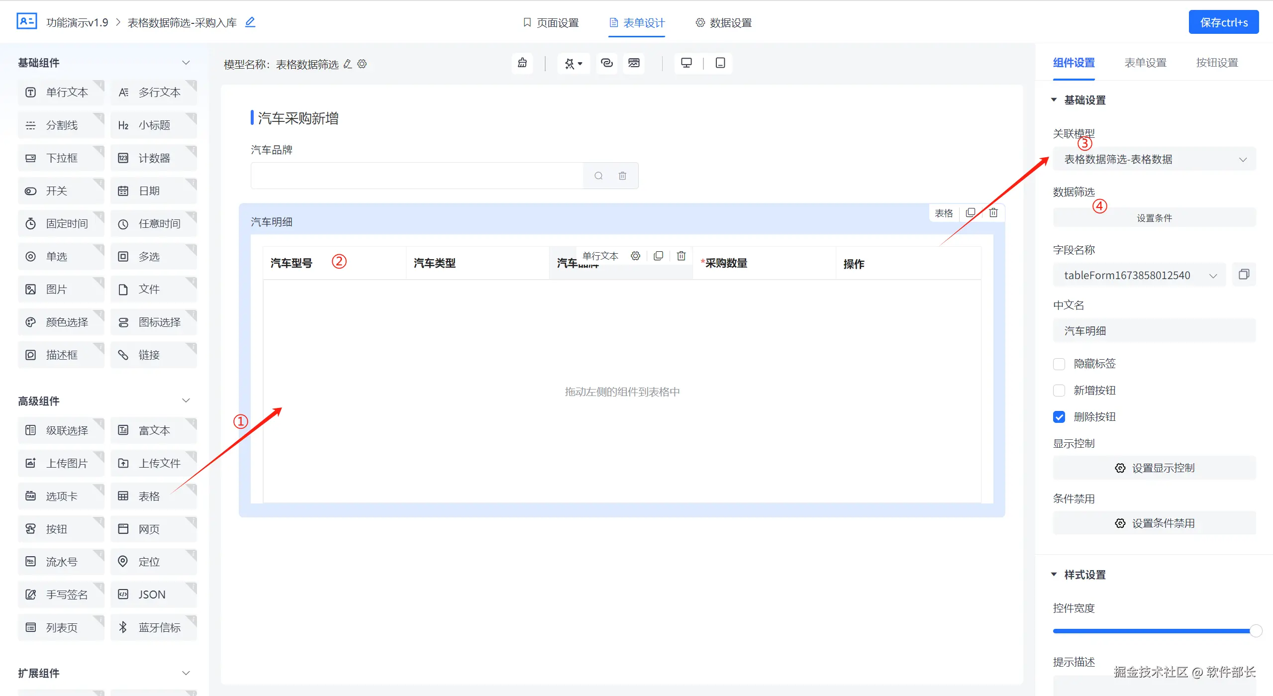 选择数据模型的时候,那么本质上就是选择一张其他的表里边的字段,那么要设置表的名称、下拉展示哪些字段、回填什么字段等配置