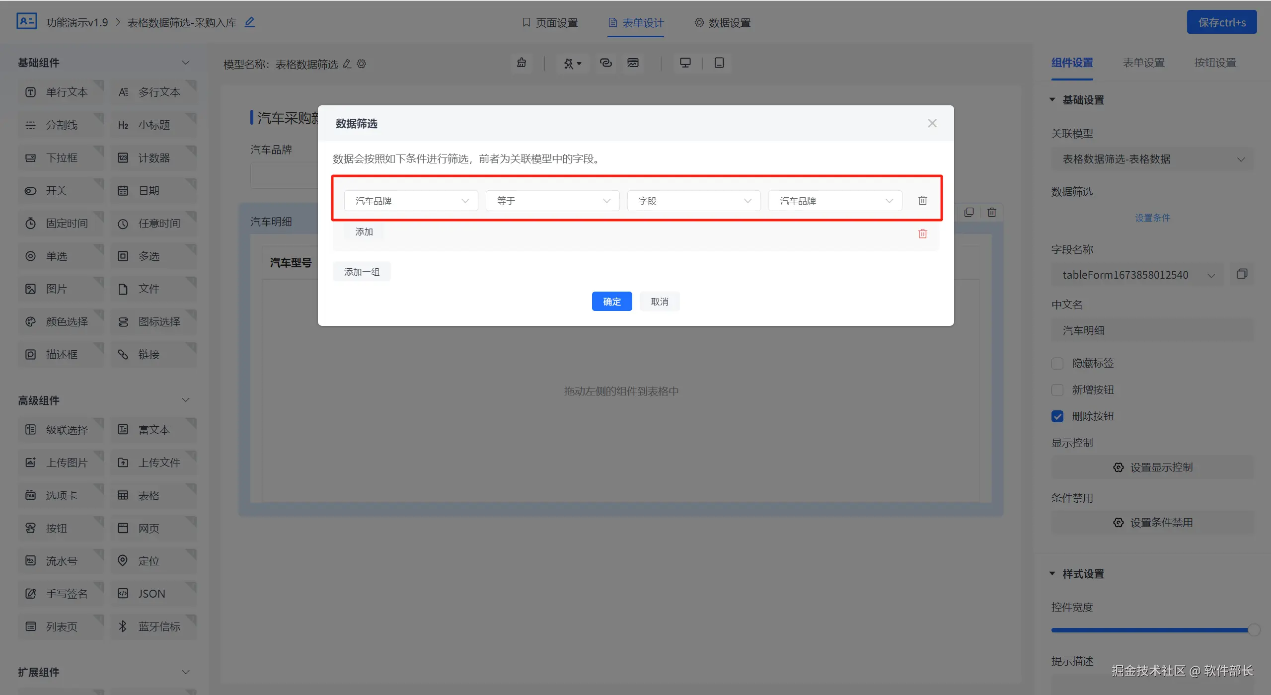 ④:设置关联模型的过滤条件,根据汽车品牌来过滤