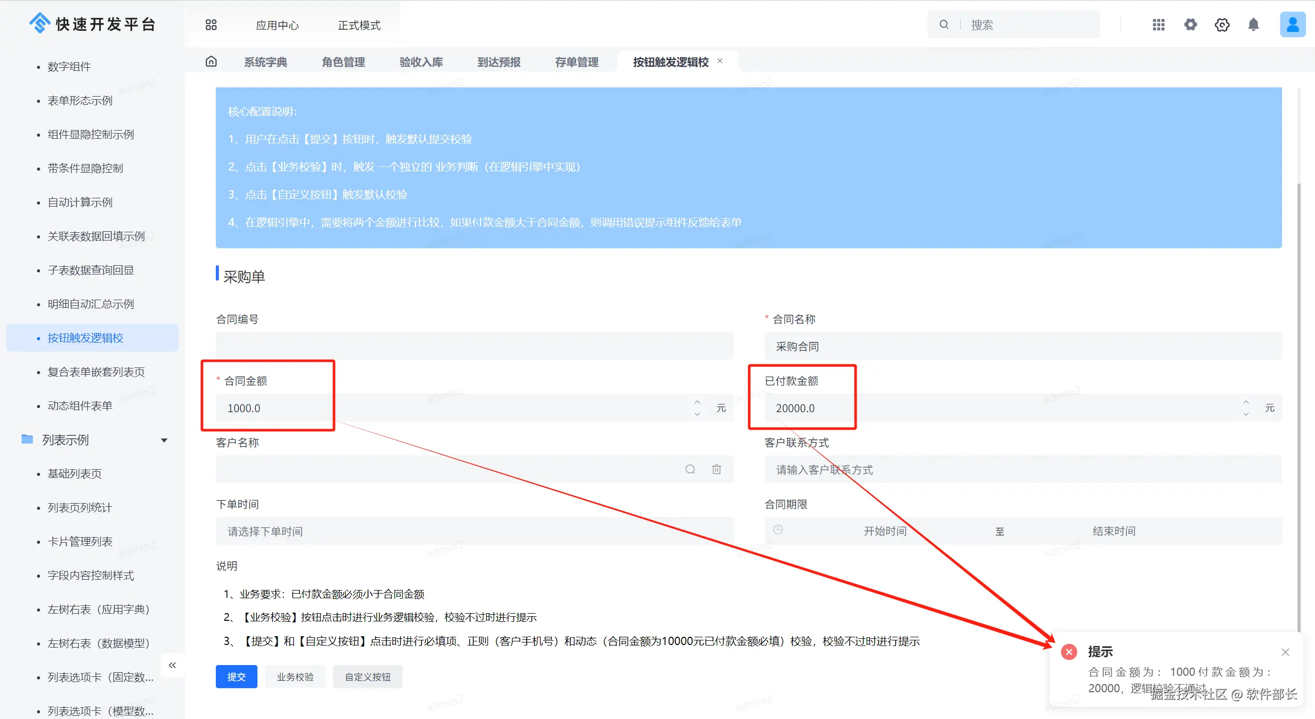 作为一名专业的低代码产品经理,我们主要以 to B 的企业级系统为配置化对象,我深知在构建高效、用户友好的企业应用系统时,表单引擎扮演着核心基础的角色。当然拖拉拽快速创建页面是最简单直接的用户体验,然而,在享受拖拉拽带来的便捷性的同时,我们绝不能忽视表单引擎中那些关乎用户体验和业务逻辑的关键动态细节。本文将重点探讨数据校验、数据联动、动态回显以及逻辑触发等核心功能,揭示它们如何共同提升表单引擎的实用性和灵活性。