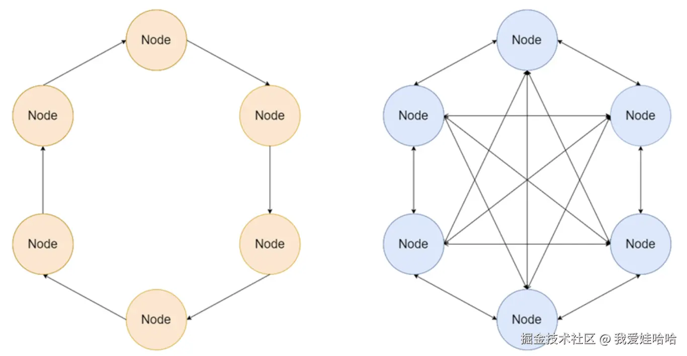 除了树形结构以外,组合模式中还有环形结构和双向结构(如下图),其中,环形结构和数据结构中的单向链表很相似,而双向结构其实就是 Spring 中 Bean 常用的结构。