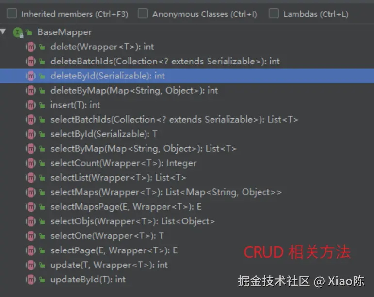 此处简单介绍一下 BaseMapper 接口中的常用方法。