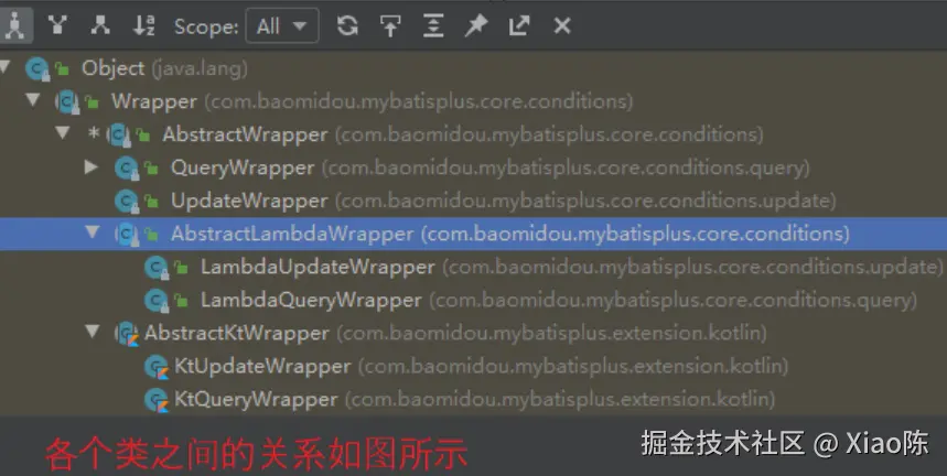 上面介绍的 接口方法的参数中,会出现各种 wrapper,比如 queryWrapper、updateWrapper 等。wrapper 的作用就是用于定义各种各样的查询条件(where)。