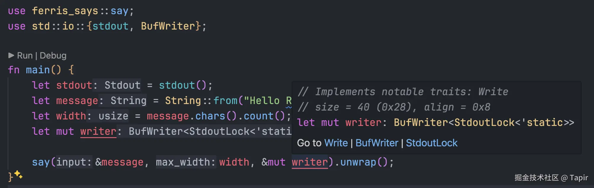 代码编辑器的代码高亮功能帮助开发者迅速区分语法元素,如变量、函数、关键字等,鼠标 hover 上去还可以快速查看变量属性和函数定义。