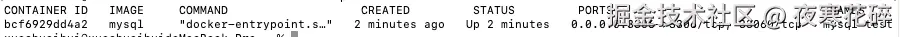 ~ % docker run -itd --name mysql-test -p 3306:3306 -e MYSQL_ROOT_PASSWORD=123456 mysql