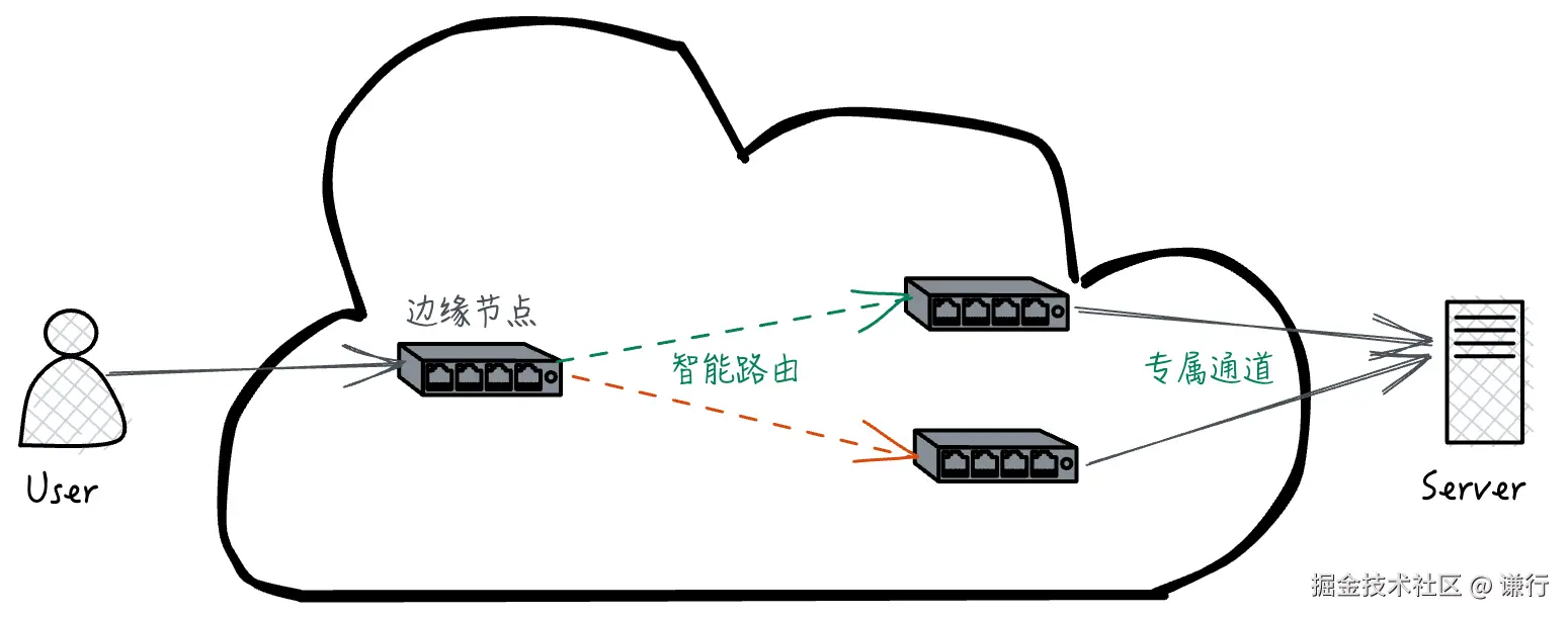 当然如果使用了 CDN 提供的边缘计算能力,可以让用户直接从 CDN 边缘节点获取动态内容,进一步加速动态内容的访问