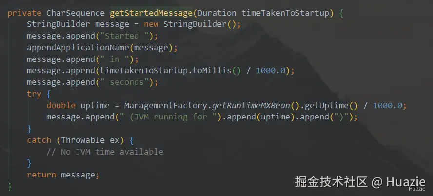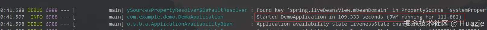 Duration.ofNanos() 用于将纳秒数转换为 Duration 对象,timeTakenToStartup 表示 Spring Boot 应用启动所需的时间。