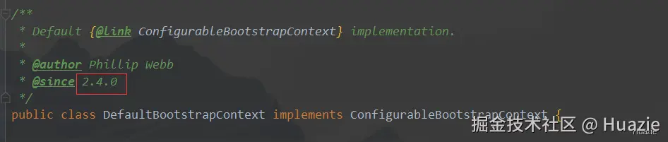 翻看 DefaultBootstrapContext 的源码可知,从 Spring Boot 2.4.0 版本开始支持引导上下文。