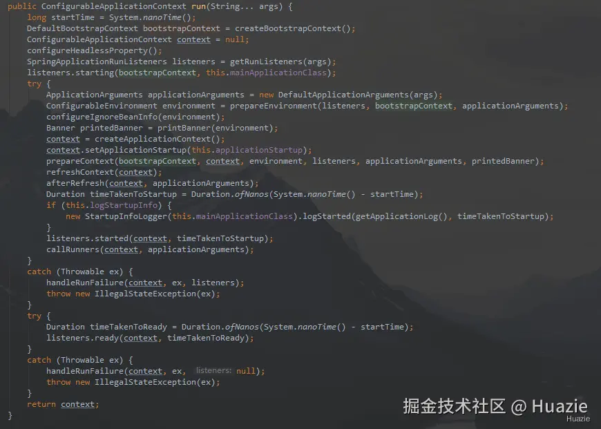 在前面的博文《初识 SpringApplication》中,Huazie 带大家一起分析了 SpringApplication 类实例化的逻辑。当 SpringApplication 对象被创建之后,我们就可以调用它的 run 方法来启动和运行 Spring Boot 项目。