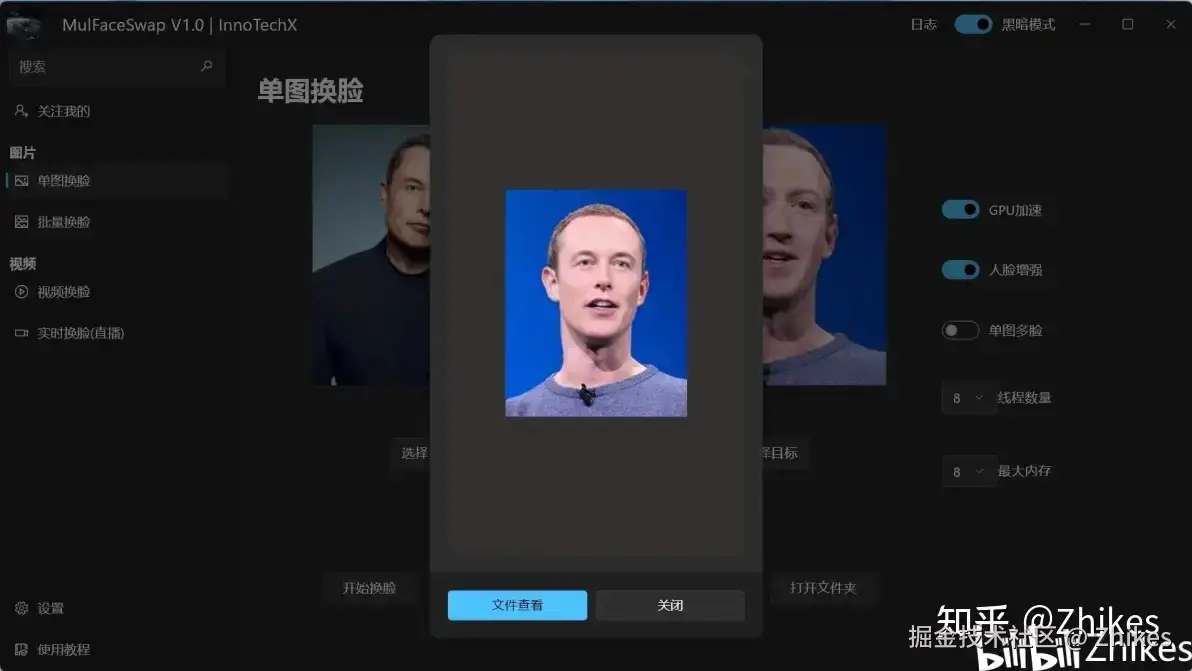 - 快速处理:在很短的时间内完成面部替换,开启GPU加速处理,相比CPU处理要快上20几倍!!!