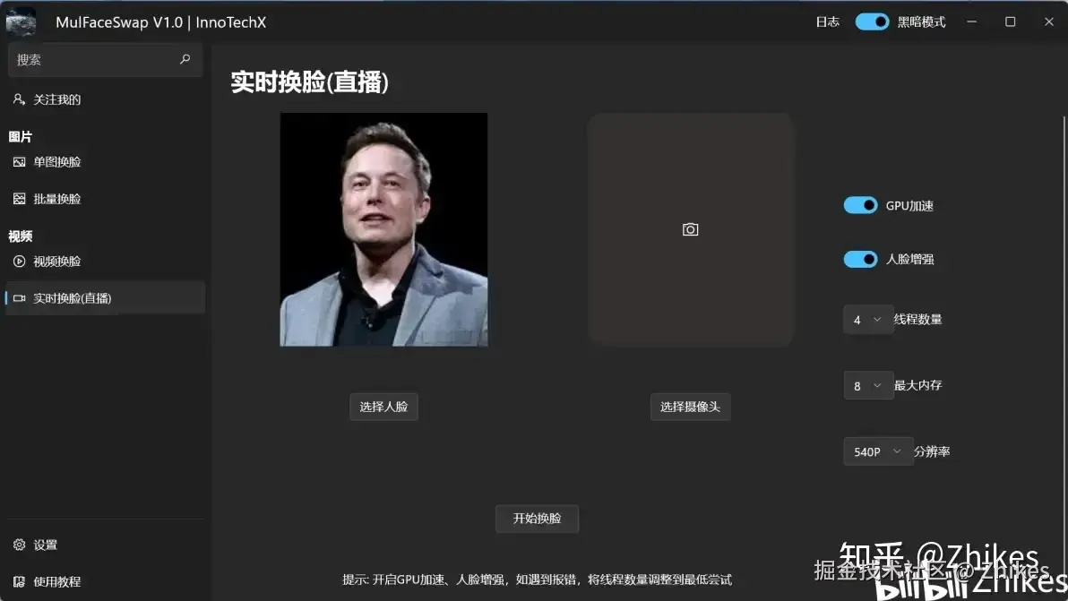 这是Roop的一大亮点功能,用户可以在进行直播时实时替换面孔,让直播过程更具趣味性和互动性。