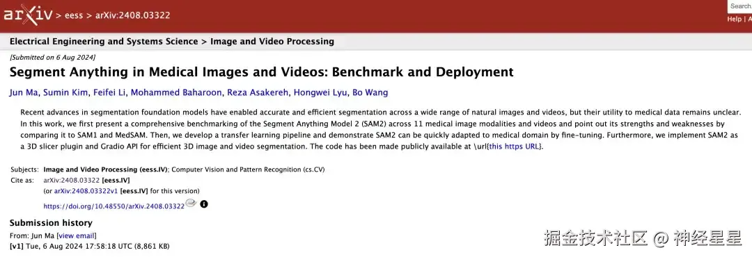 SAM 2 开源不到半个月,多伦多大学研究人员就将它用在医学图像和视频上,还顺便发表了一篇 paper!