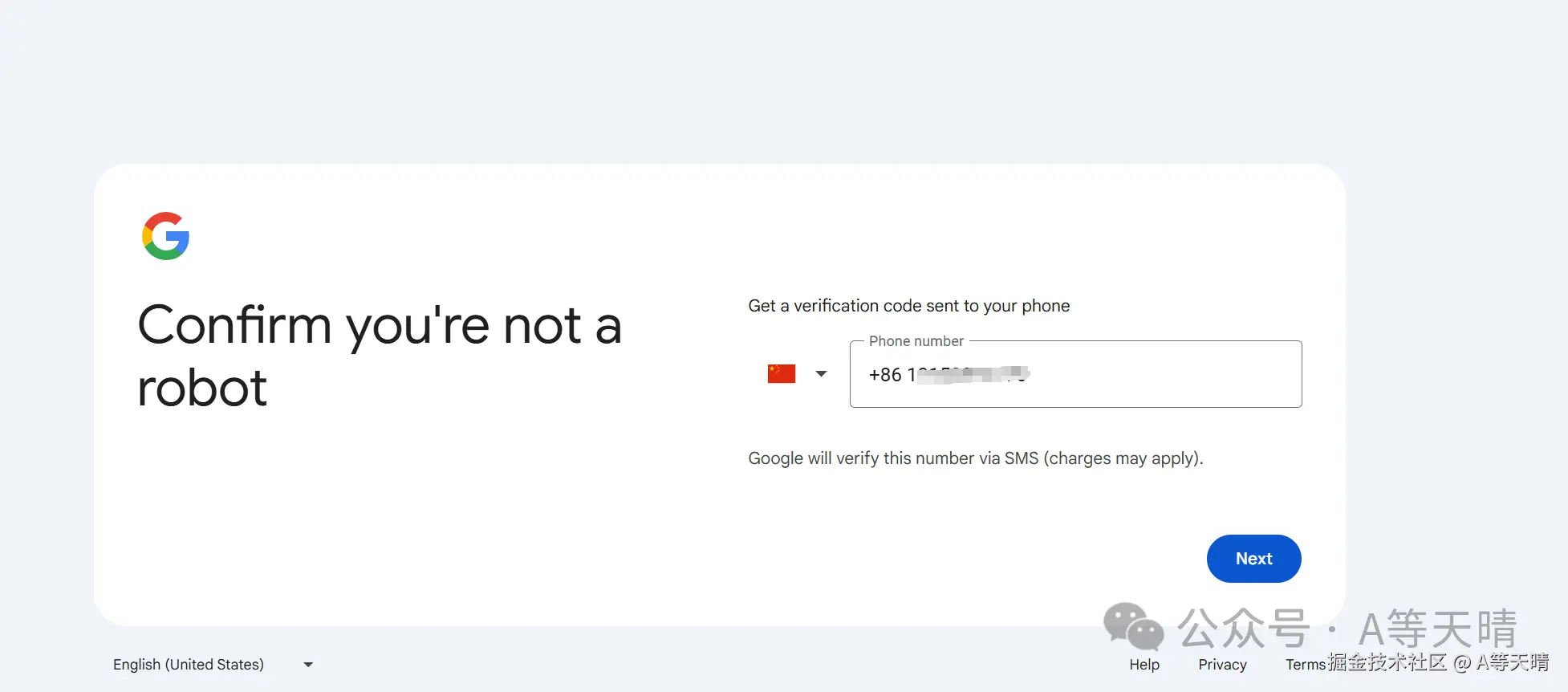 到这里就选择国内的+86电话,然后输入自己的电话,然后就可以注册成功了,亲测是可以接收到验证码的。(如果不能的话请更换谷歌浏览器,然后无痕模式,再加上设置浏览器成英语(美国)然后重新注册)