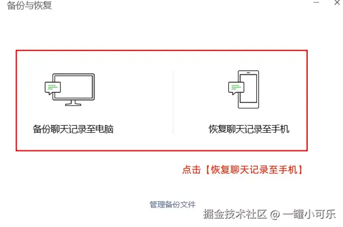 步骤2:根据界面提供的选择,点击 【恢复聊天记录至手机】 即可。