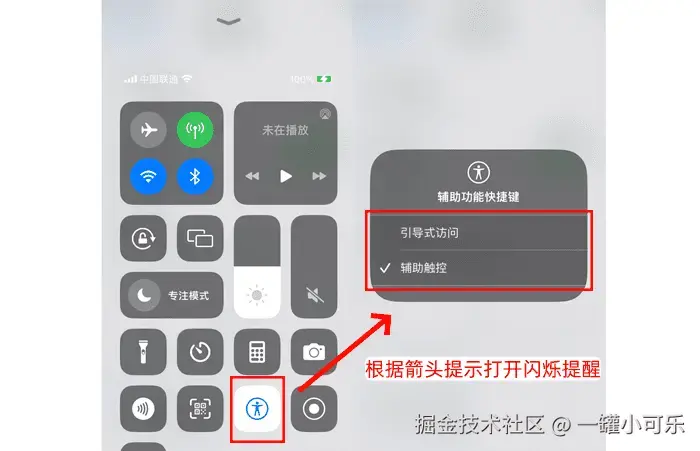 开启来电方法二:使用控制中心开启来电闪光