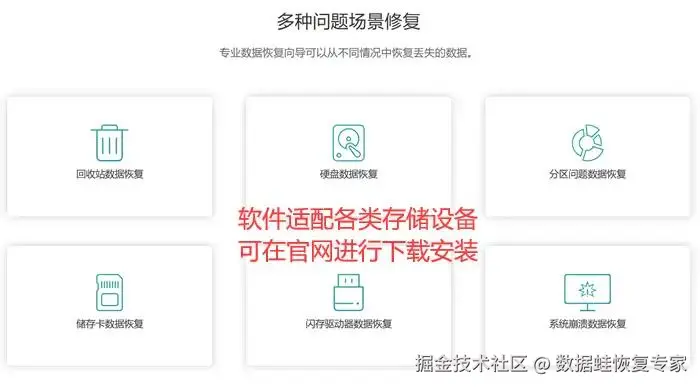 除了系统自带的工具,我们还可以借助专业恢复软件将删除的文件找回。例如数据 蛙恢复专家。它具有更强大的恢复功能,可以最大程度找回被删除、格式化、损坏的文件,包括电脑硬盘、U盘、移动硬盘等存储设备。你可以按照以下步骤操作:
