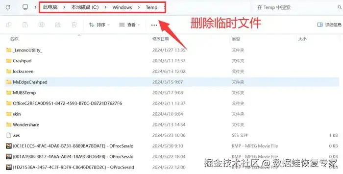 临时文件是Windows在运行过程中产生的,用于存储临时数据。随着时间的推移,这些临时文件会不断累积,占用大量的磁盘空间。为了释放这部分空间,我们可以定期清理临时文件夹。你可以直接进入c盘,然后进入下图的文件夹,删除临时文件以清理c盘空间。此外,你也可以通过运行命令提示符,进行数据清除。