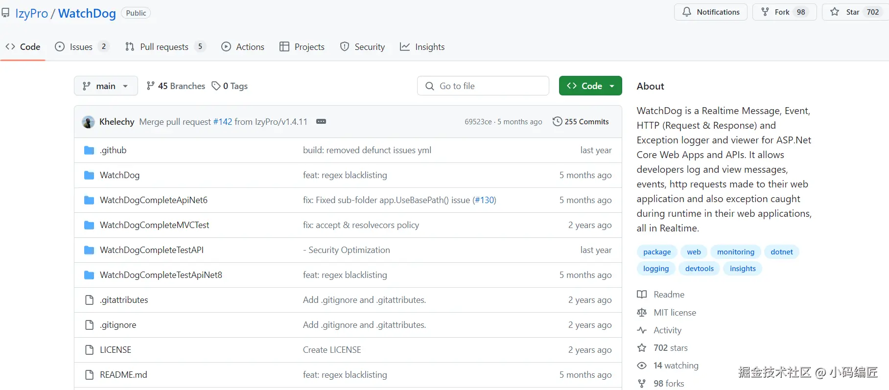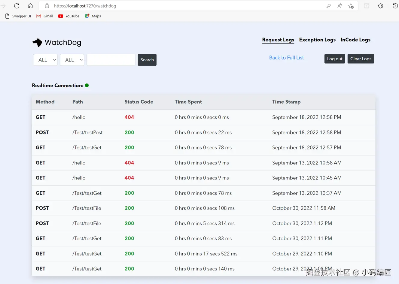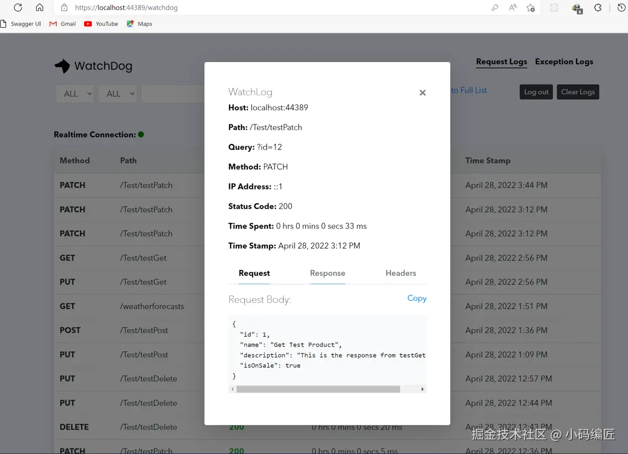 WatchDog是一个开源(MIT License)、免费的实时应用监控系统,专为ASP.NET Core Web应用程序和API设计。我们可以实时记录和查看应用程序中的消息、事件、HTTP请求和响应,以及运行时捕获的异常。