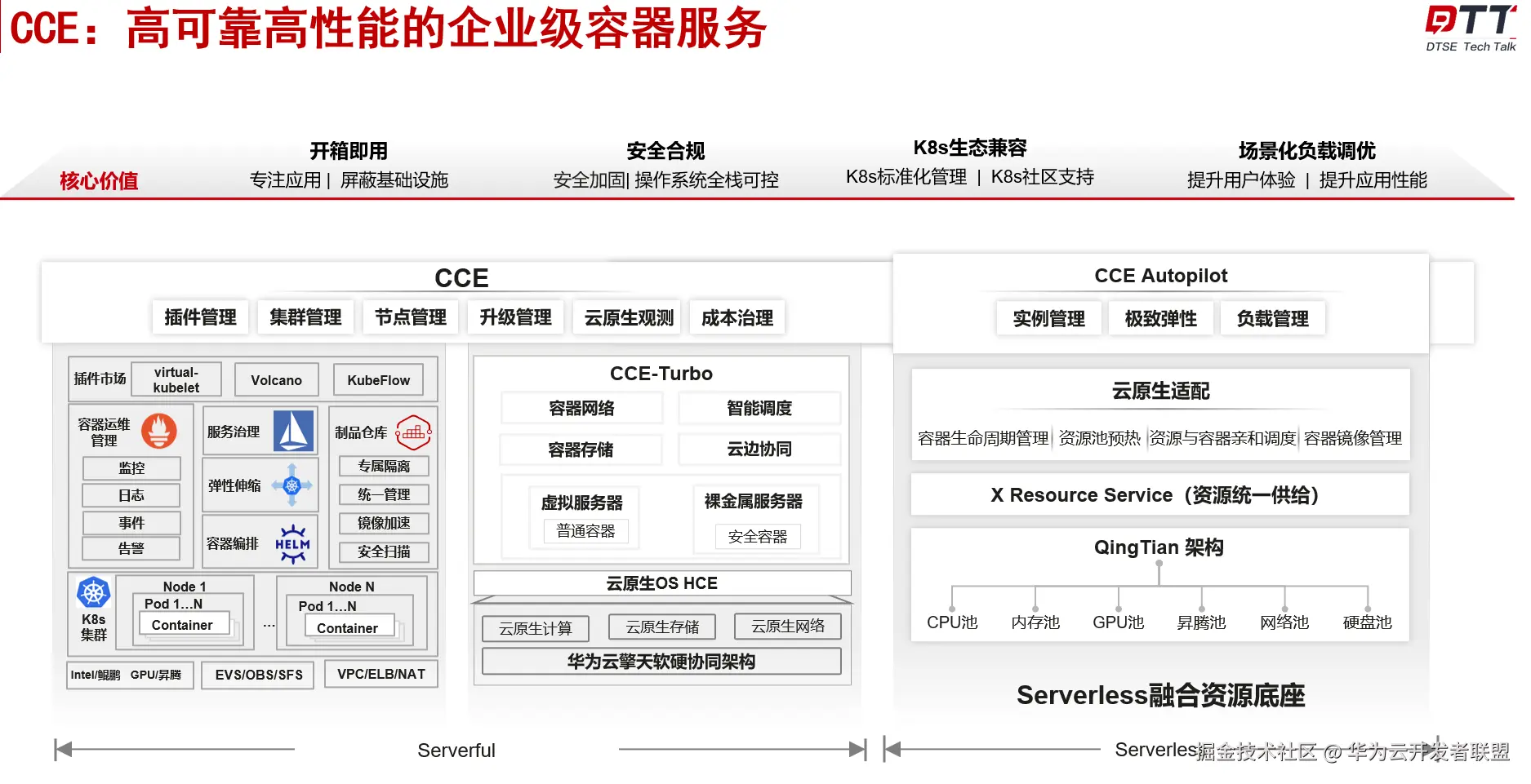 今年新推出的CCE Autopilot属于Serverless服务,在擎天架构的基础上新增了资源统一供给层,提供了极致的弹性。