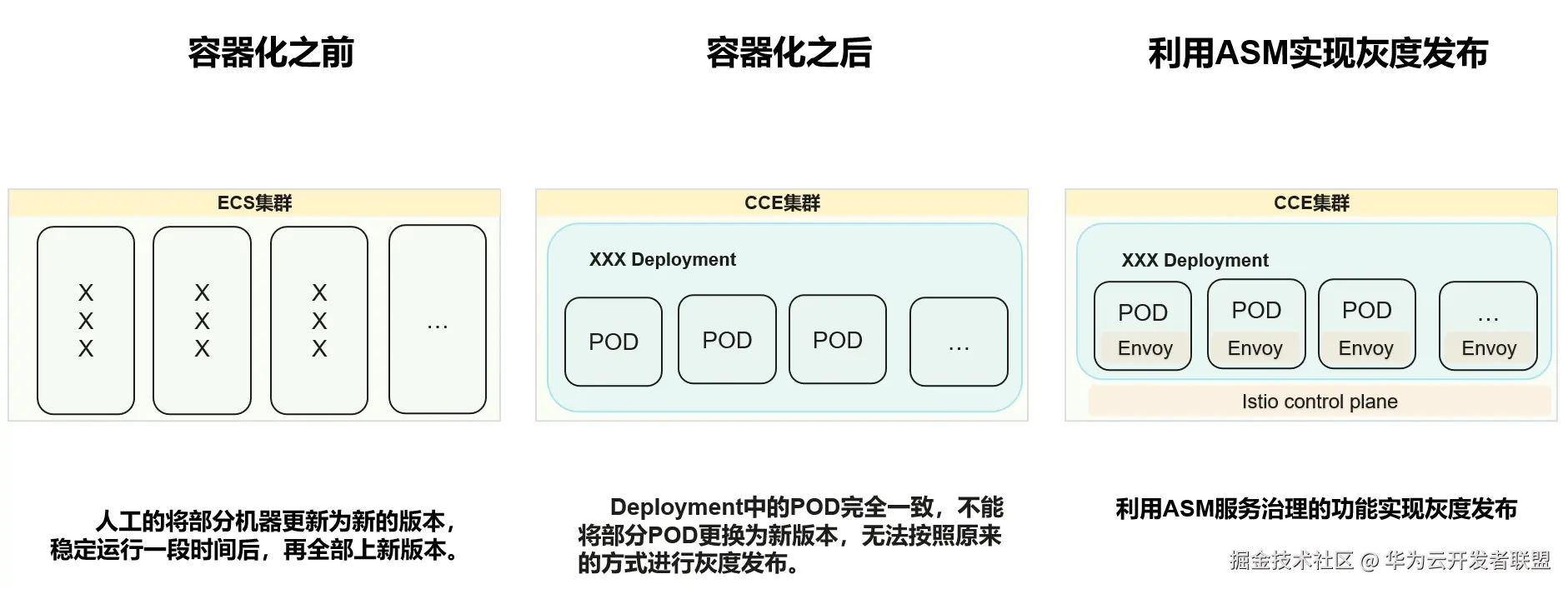然而在容器化之后,应用使用Deployment部署了多个POD,但是Deployment是一个整体,其中的POD会完全一致,无法按照原来的模式将部分的POD更换为新版本。