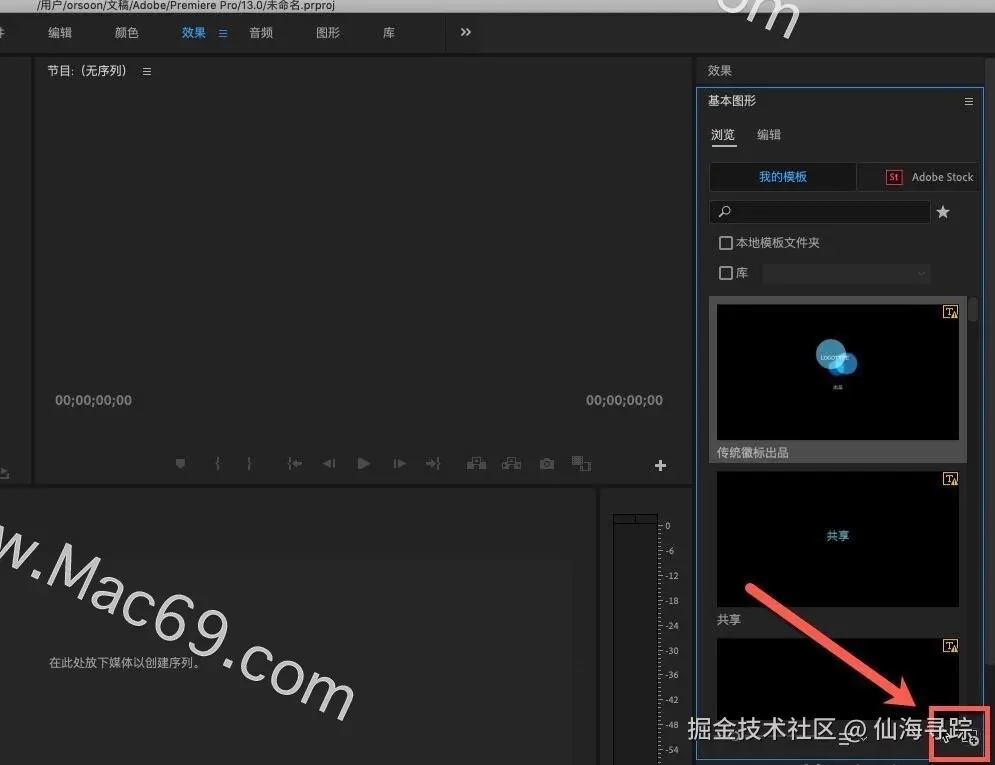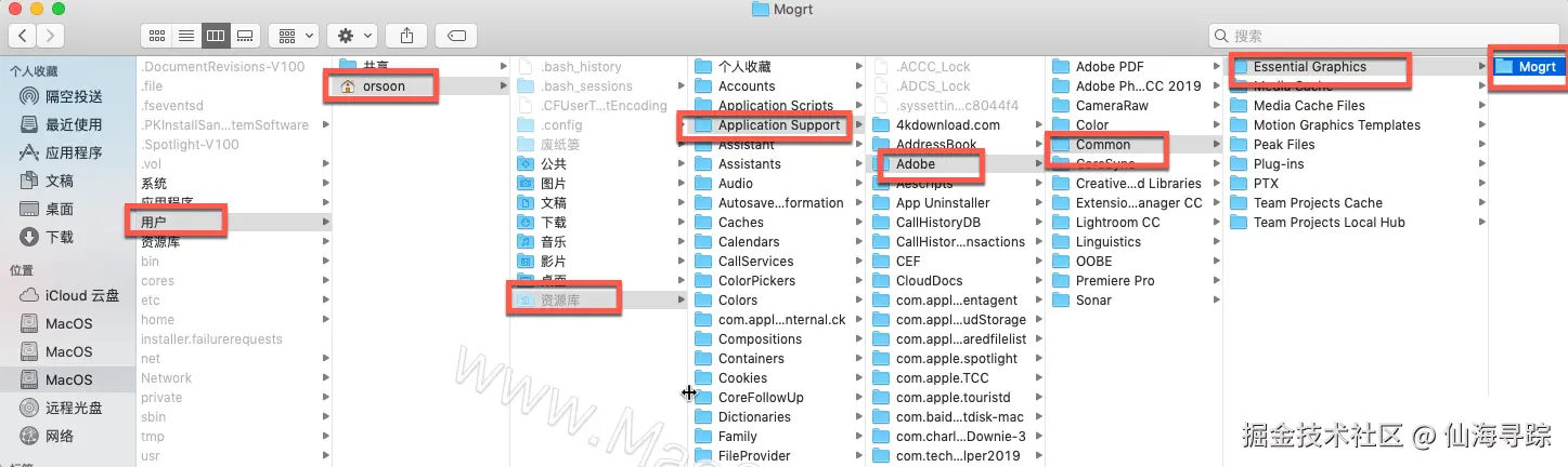 1、路径:用户/用户名/资源库/Application Support/Adobe/Common/Essential Graphics/Mogrt
