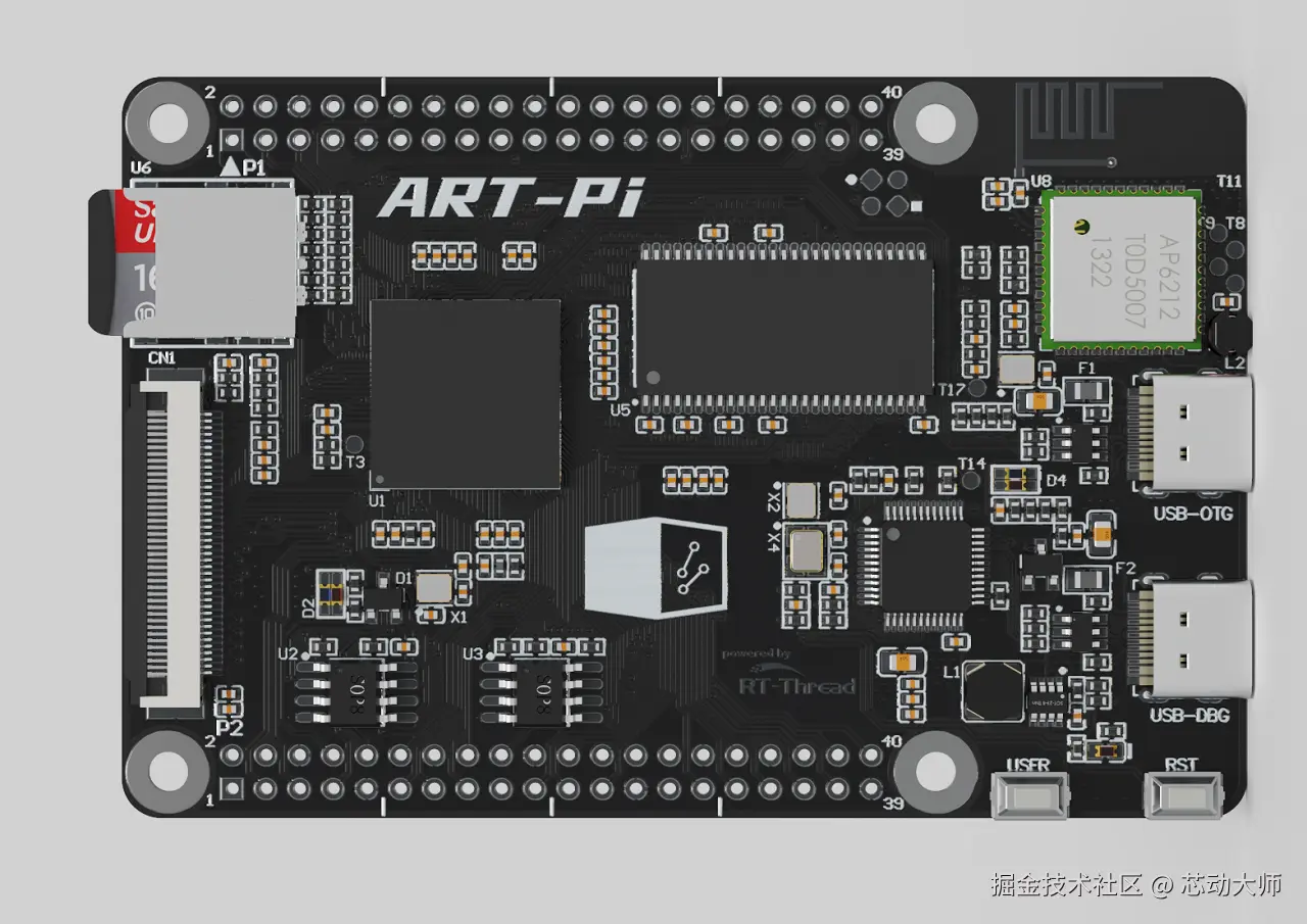 ART-Pi 是 RT-Thread 官方推出一款具有高度可扩展性的硬件,能很好的满足绝大多数开发人员的 DIY 想法,其具备性能强大的主控,实用的外设,丰富的扩展接口,是学习、开发、DIY 的不二之选。