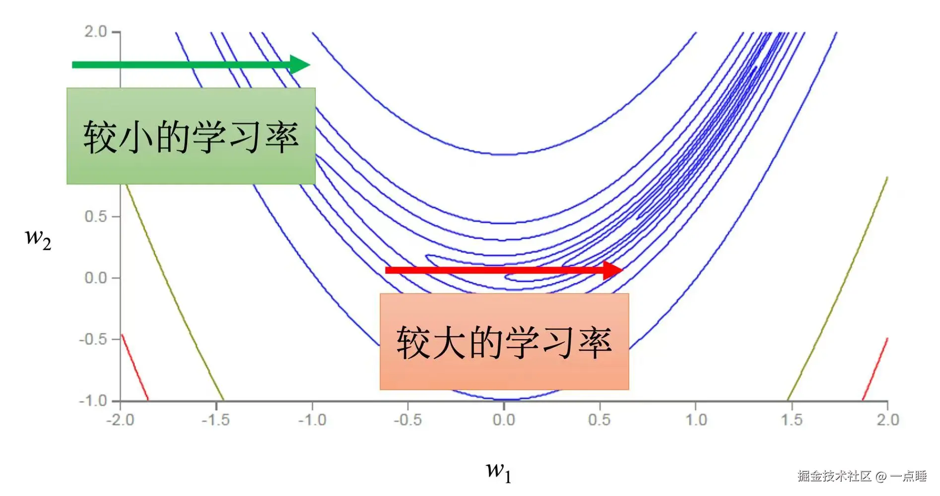 所以,如果在某一方向上梯度的值很小,非常平坦,我们会希望学习率调大一点;如果在某一方向上梯度的值很大,非常陡峭,我们会希望学习率调小一点。