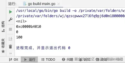 fmt.Printf("%T\n", p) // 打印结果是*int,即int类型的指针