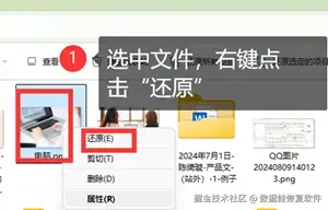 方案一:通过回收站文件还原按键实现移动硬盘数据恢复